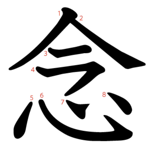 念은 "지금(今) 마음속에(心) 있는 생각" -> "생각, 사념"이라는 뜻의 글자입니다.