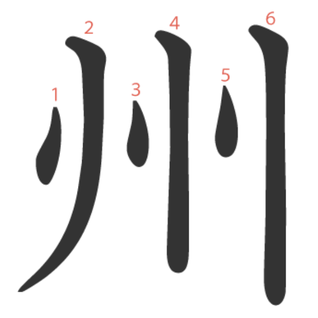 州는 "모래톱이 쌓인 강(川)"을 그린 상형문자입니다.