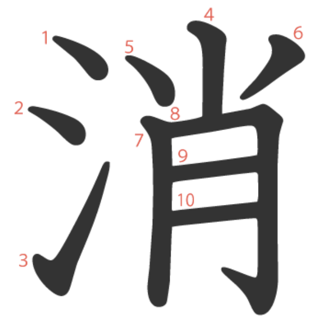 消 = 氵 + ⺌ + 月。