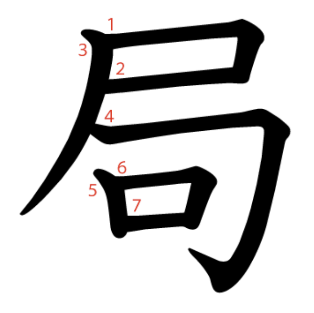 局는 "의자(𠃌)에 앉아(尸) 장기(口)를 두다" -> "장기" -> "판(대국), 국면, 부분, 판세"라는 뜻의 글자입니다.