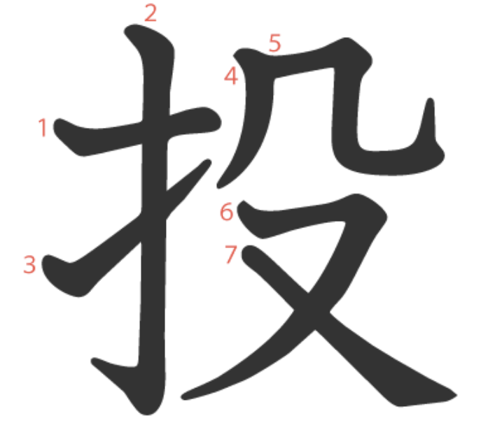 投는 "손(扌)을 휘둘러(殳) 물건을 던지다" -> "던지다"라는 뜻의 글자입니다.
