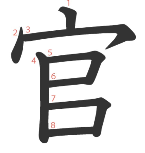 官는 "관청(宀)에만 앉아있는 엉덩이(㠯)가 무거운 정부 관료" -> "관청, 관직, 관리"라는 뜻의 글자입니다.