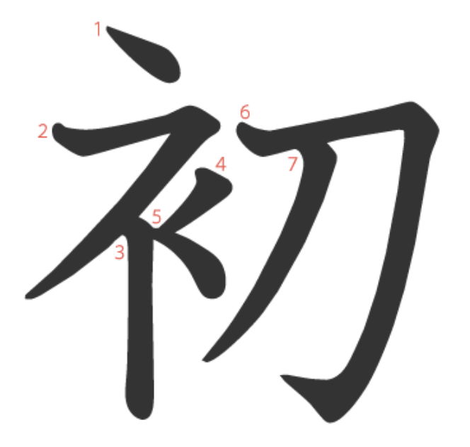 初는 "옷감(衤)의 재단(刀)" -> "처음, 시초"라는 뜻의 글자입니다.
