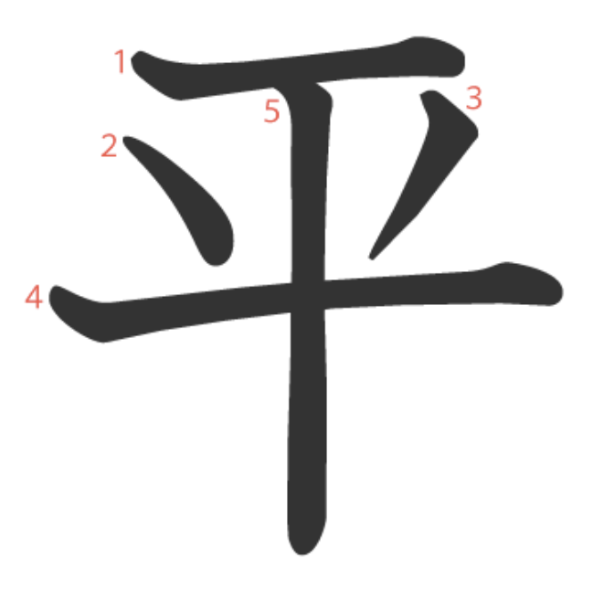 平는 "악기 소리가 고르게 퍼져나가는 모습"을 묘사한 상형문자입니다.