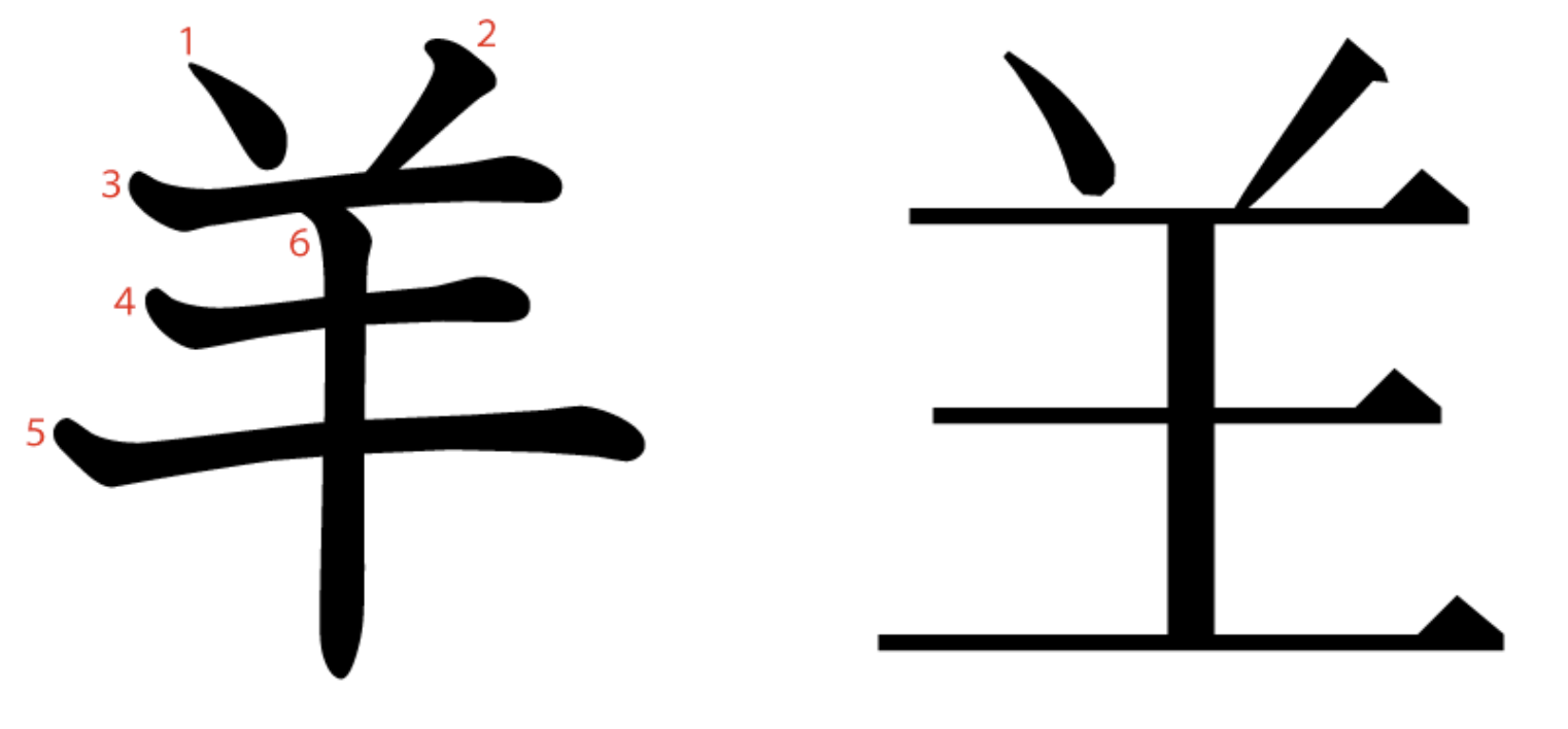 羊는 "양의 머리"를 정면에서 본 모습을 그린 상형문자입니다.
