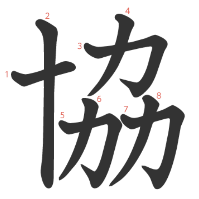 - キョウ 協力 협력, 協同 협동, 協会 협회, 協定 협정