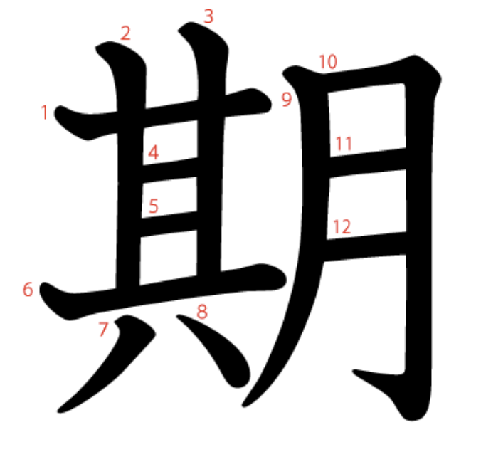 期는 "달(月)이 뜨고 지는 주기" -> "시기, 때"라는 뜻의 글자입니다(其는 소리부).