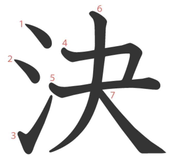 決 = 氵 + 夬。
