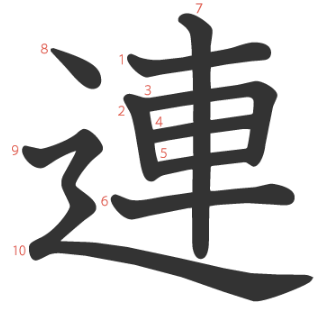連 = ⻌ + 車。
