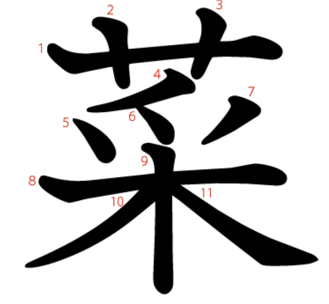 菜는 "나물(艹)을 캐다(采)" -> "야채, 채소"라는 뜻의 글자입니다.