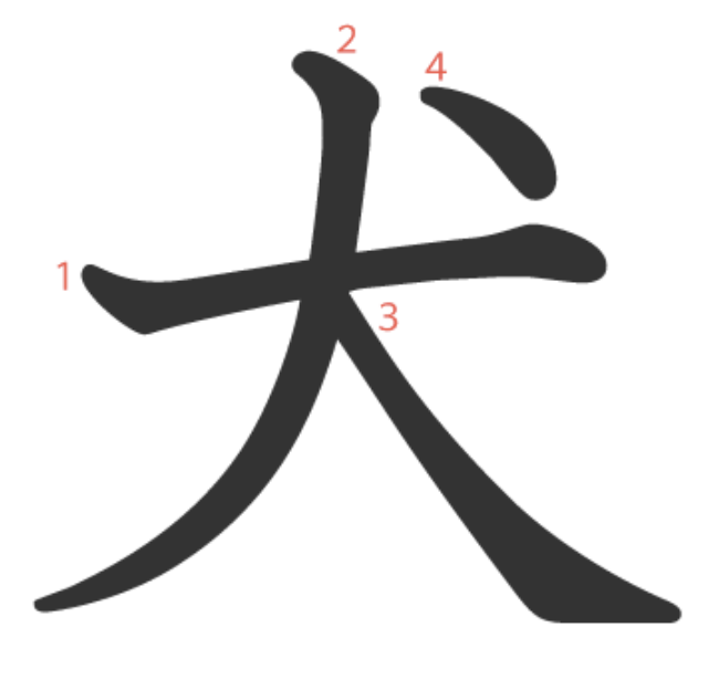 犬는 "꼬리가 강조된 개"를 그린 상형문자입니다.