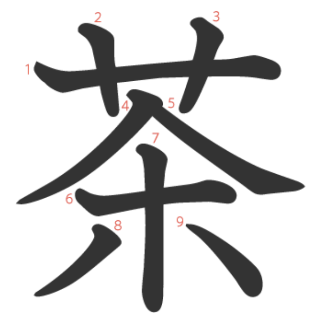 茶 = 艹 + 𠆢 + 朩。