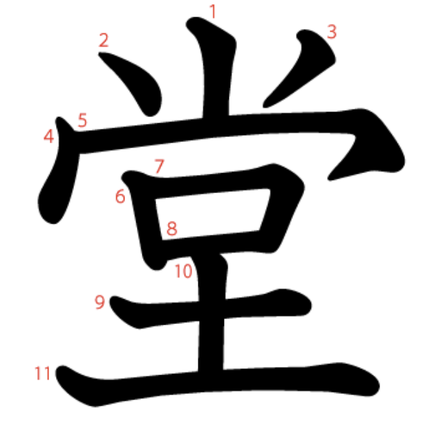 堂는 "땅(土) 위의 거대한 궁궐(龸)의 출입구(口)" -> "전당, 큰 건물"이라는 뜻의 글자입니다.