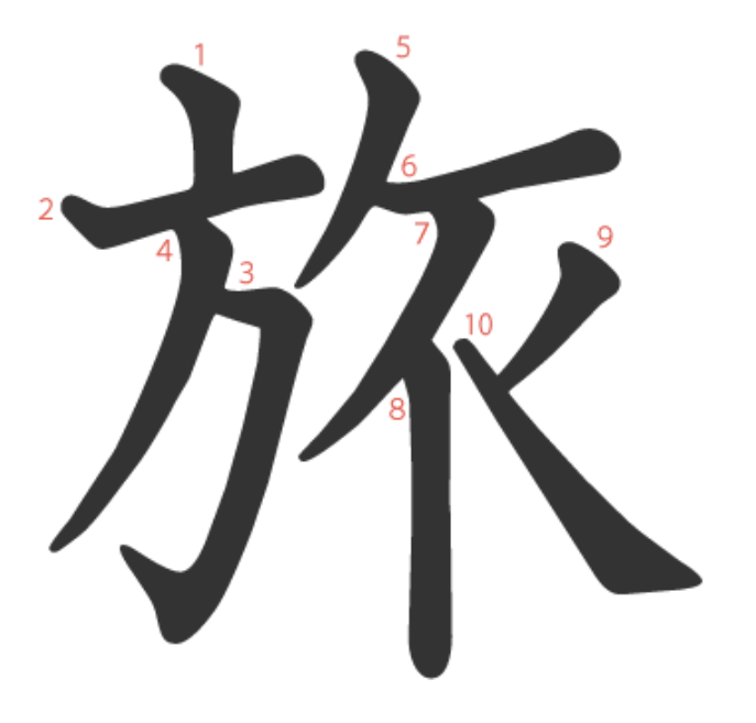 旅는 "군기(𭤨)를 휘날리며 원정을 떠나는 병사들(𧘇)" -> "여행"이라는 뜻의 글자입니다.