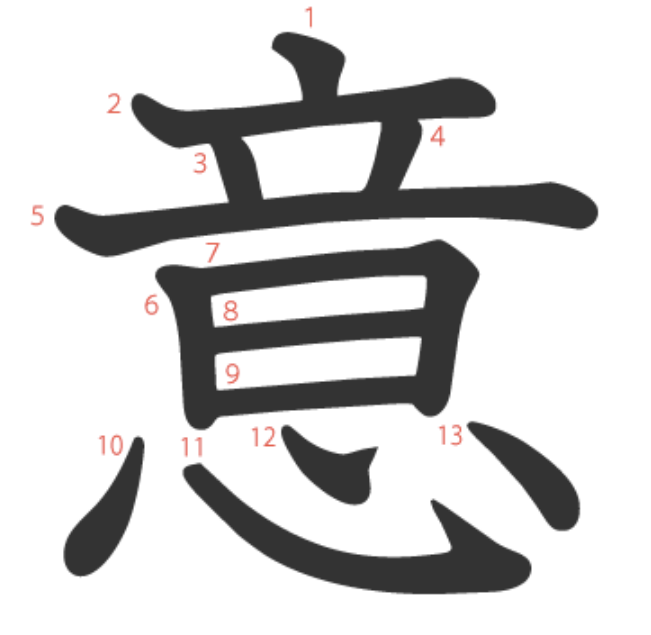 意는 "마음(心)의 소리(音)" -> "뜻, 생각, 의미"라는 뜻의 글자입니다.
