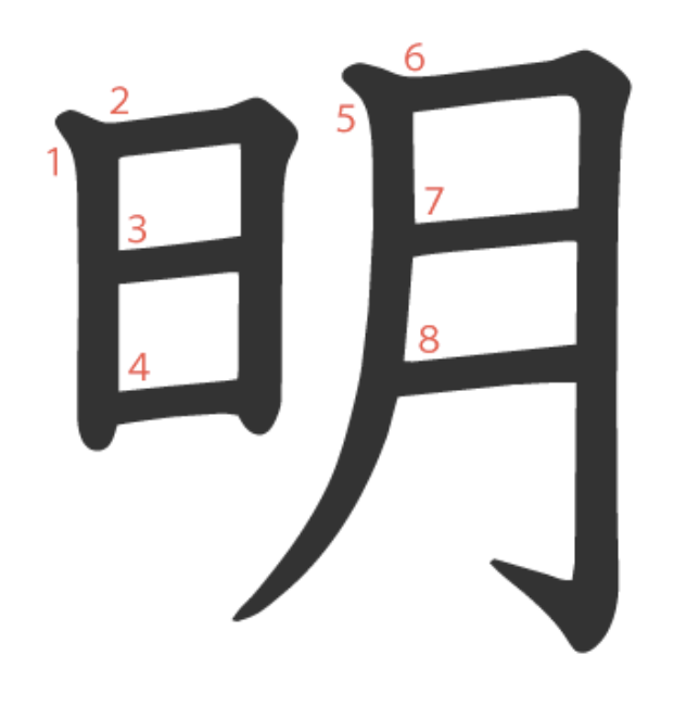 明는 "해(日) + 달(月)" -> "밝다"라는 뜻의 글자입니다.