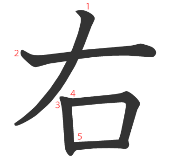右는 "밥 먹을 때(口) 쓰는 손(𠂇)" -> "오른손" -> "오른쪽"이라는 뜻의 글자입니다.