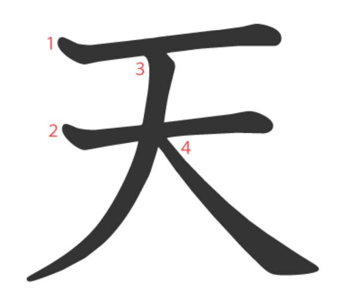 天는 "사람(大)위의 하늘(一)" -> "하늘"이라는 뜻의 글자입니다.
