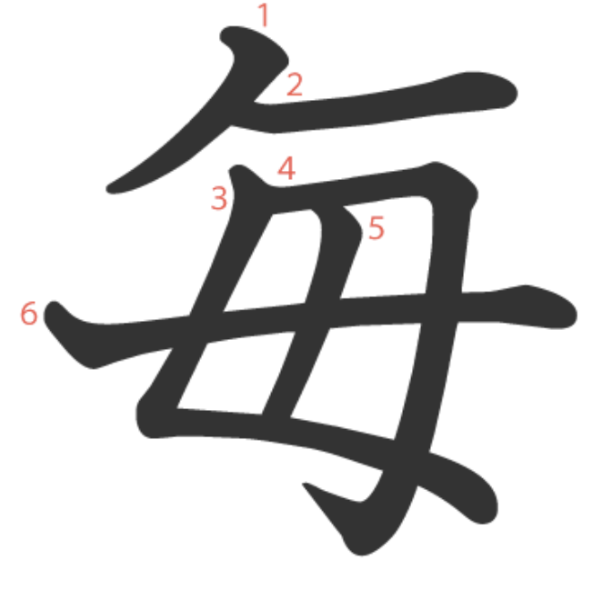 毎는 "매일 머리에 비녀(𠂉)를 꽂는 어머니(毋)" -> "매번"이라는 뜻의 글자입니다.