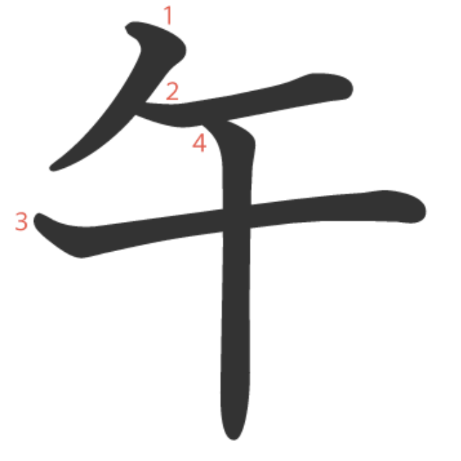 즉, 午의 모양과 의미 사이에는 아무런 관계도 없습니다.