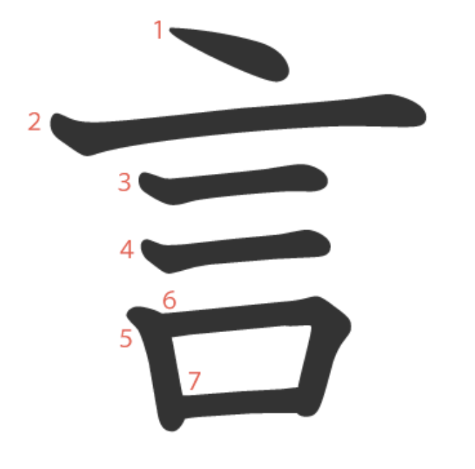 言는 "입(口)에서 퍼져나가는 소리(ニ+ニ)" -> "말하다"라는 뜻의 글자입니다.