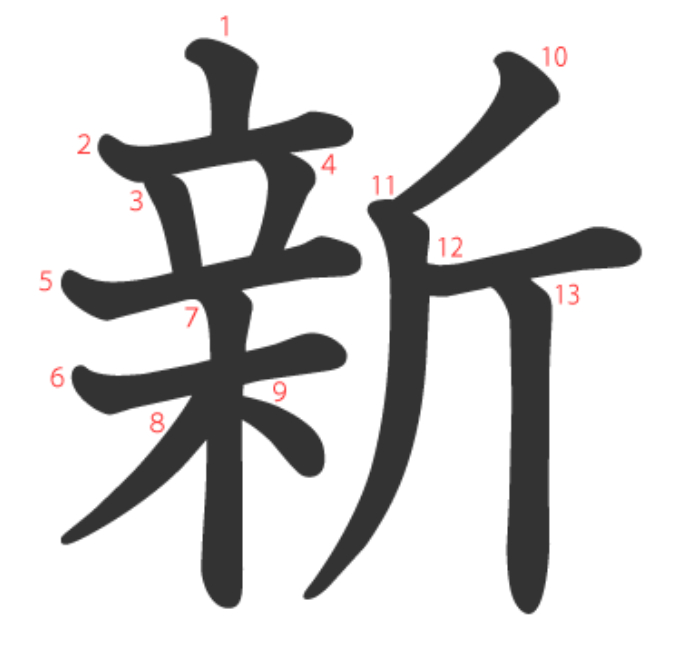 新는 "우뚝 선(立) 나무(木)를 베어서(斤) 새로운 물건을 만들다" -> "새롭다"라는 뜻의 글자입니다.