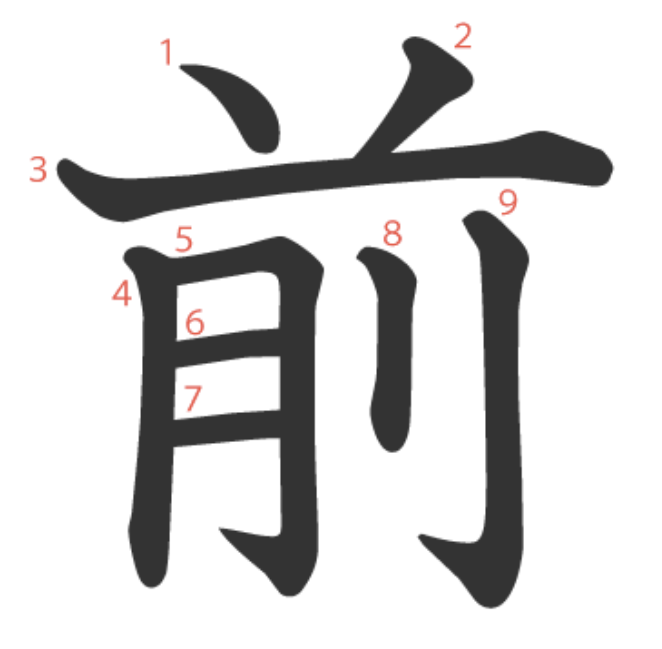 前는 "고기(月)의 앞부분(䒑)을 칼(刂)로 잘라내다" -> "앞"이라는 뜻의 글자입니다.