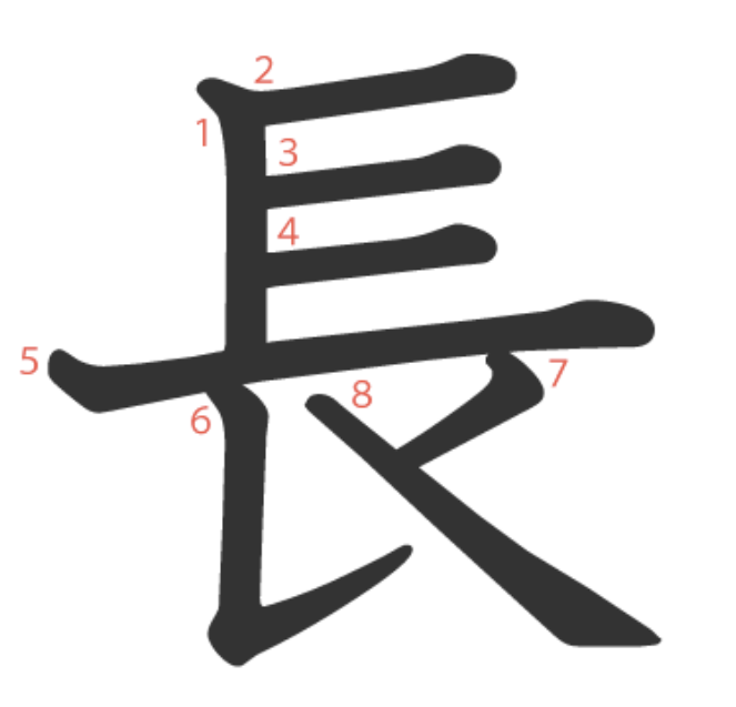 長는 "머리가 긴 노인이 지팡이를 짚고 걸어가는 모습"을 그린 상형문자입니다.