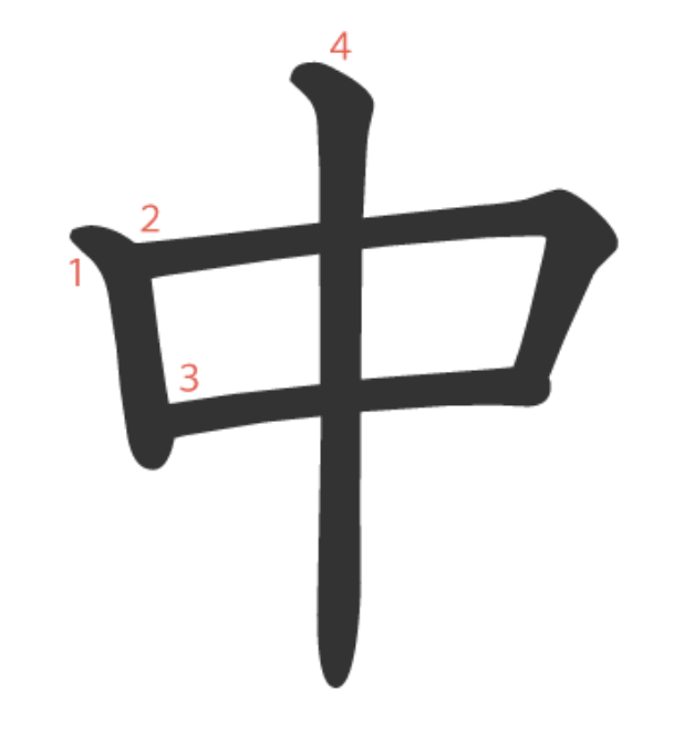 中 = 口 +⼁。