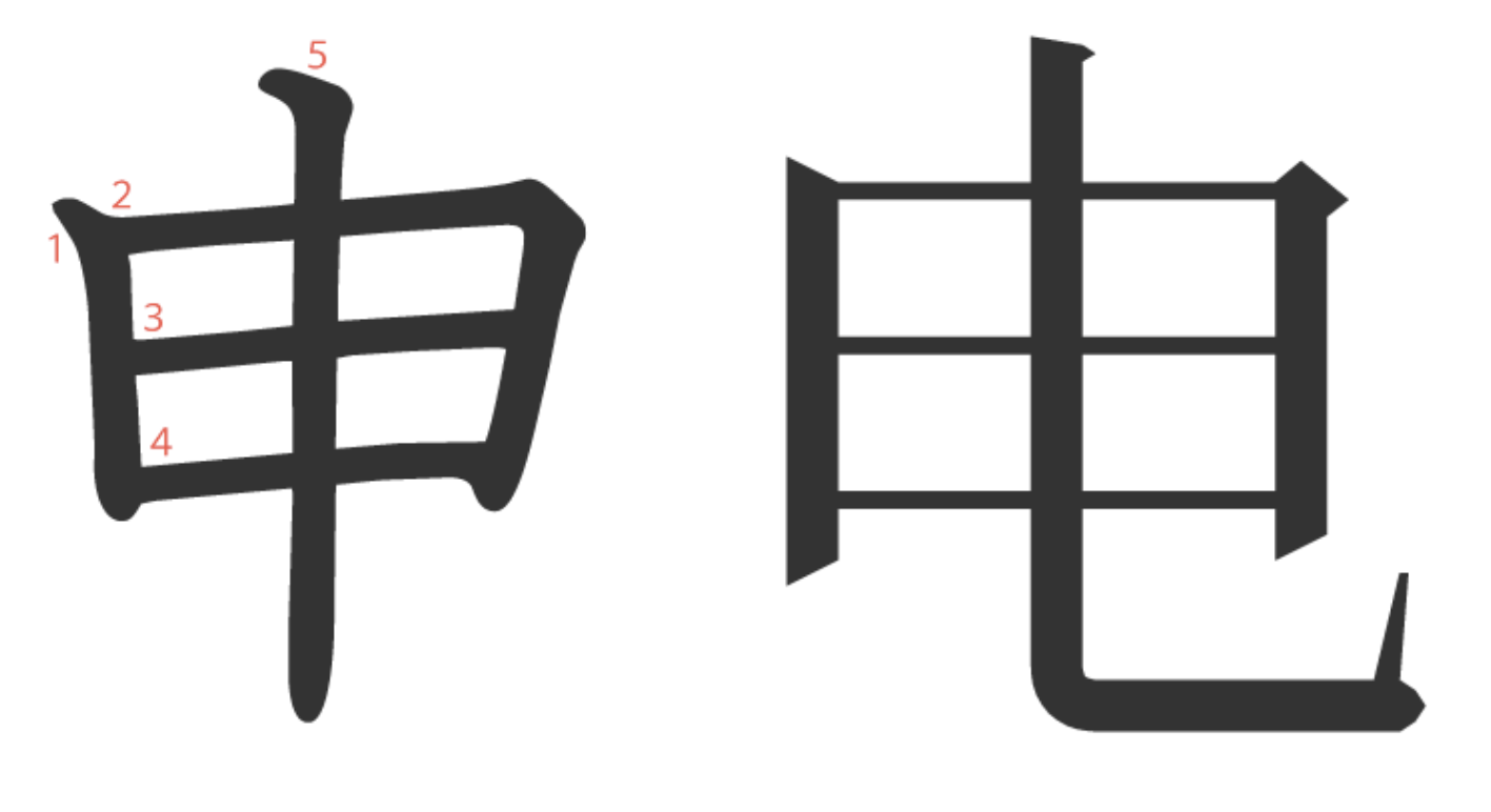 电는 申가 살짝 변형된 것으로, 의미는 같습니다.
