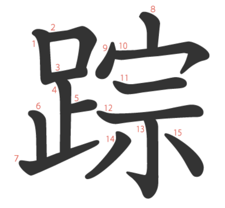 踪는 "위대한 성인(宗)의 발자취(足)" -> "자취, 흔적"이라는 뜻의 글자입니다.