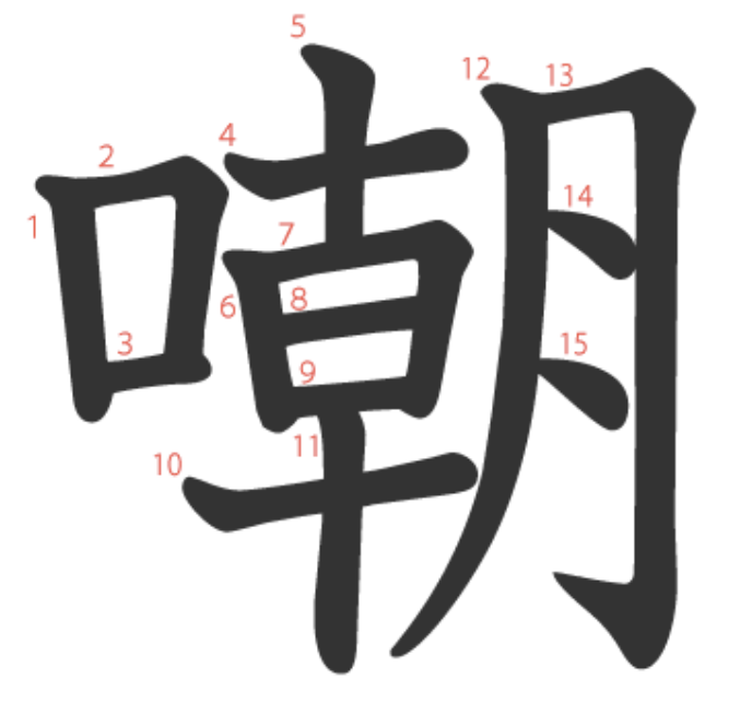 嘲 = 口 + 朝。