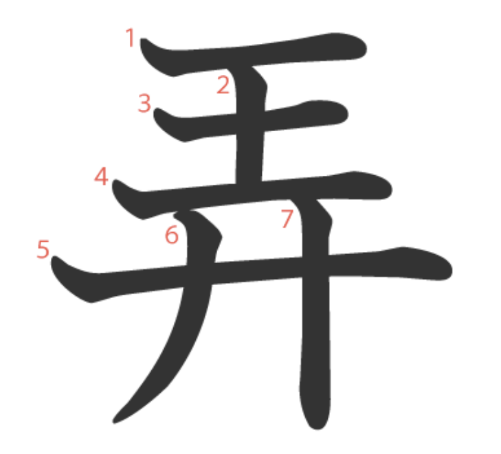 弄 = 王 + 廾。