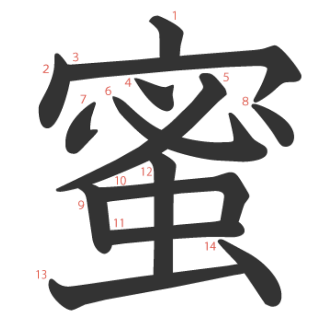 蜜는 "벌(虫)이 벌집 깊숙이 숨겨둔(密) 꿀" -> "꿀"이라는 뜻의 글자입니다.