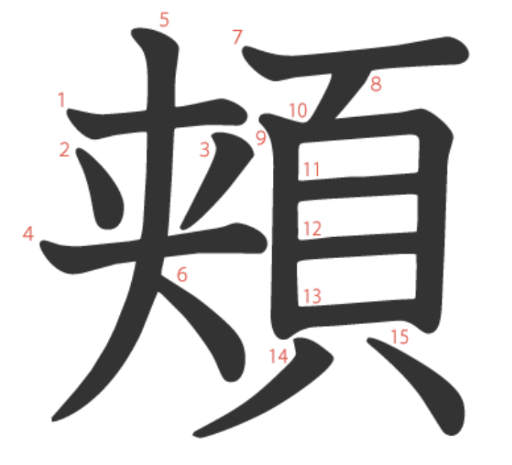頬는 "얼굴(頁)을 사이에 끼고(夹) 있는 양쪽 뺨" -> "뺨"이라는 뜻의 글자입니다.