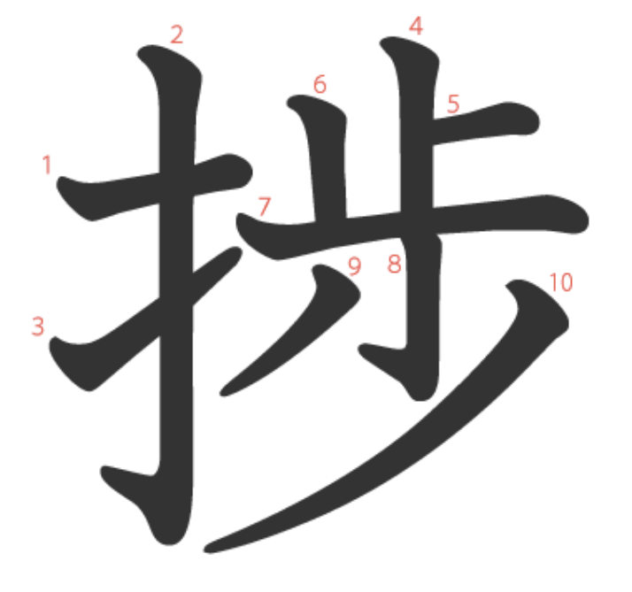 捗 = 扌 + 步。