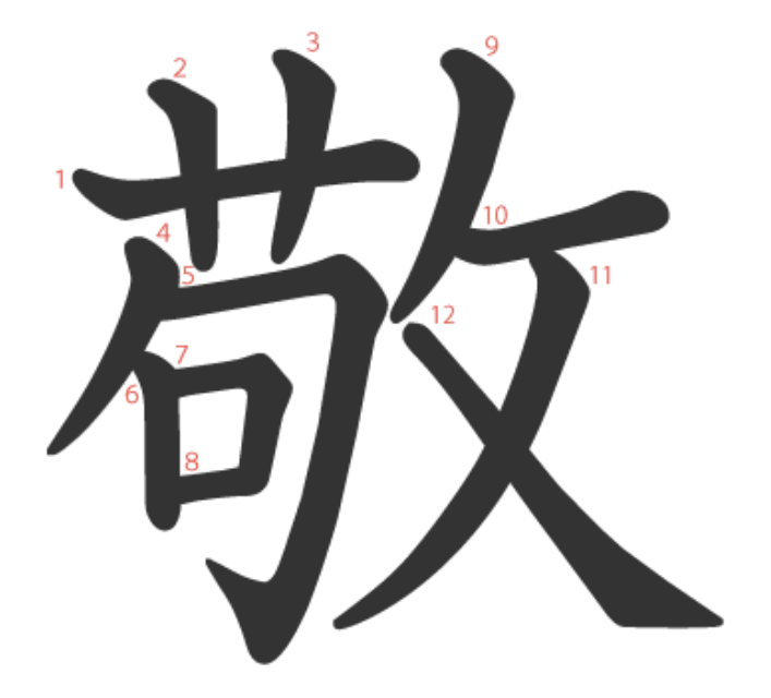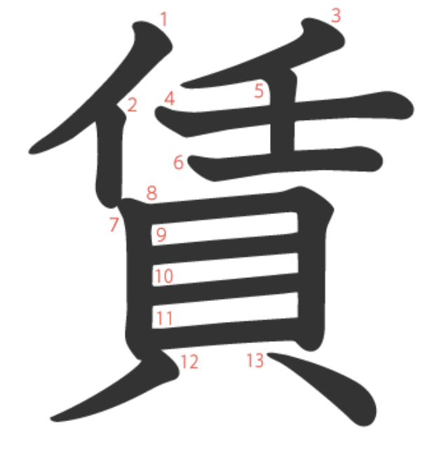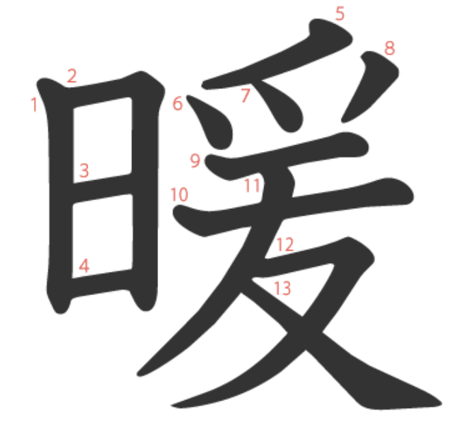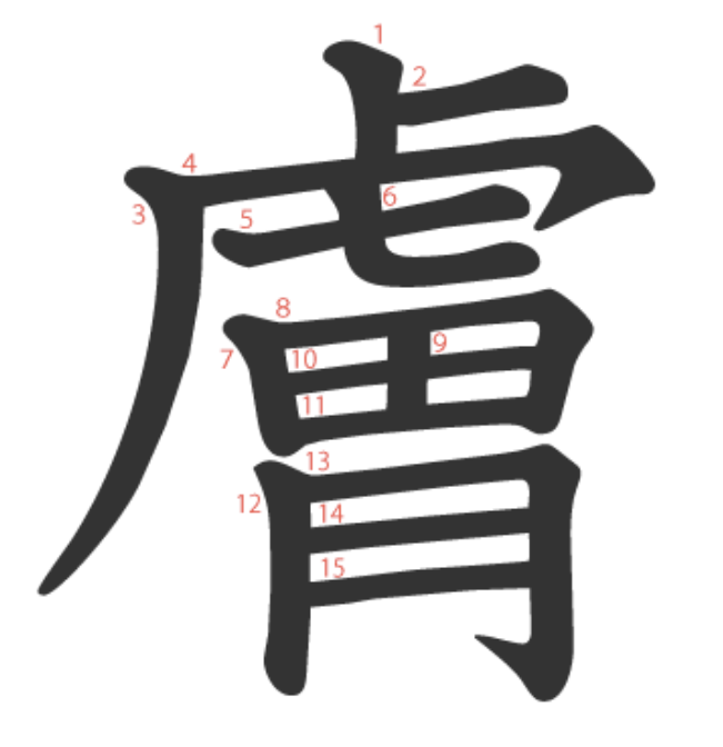 - 훈독 にく(む)、にく(い)、にく(らしい)、にく(しみ)
