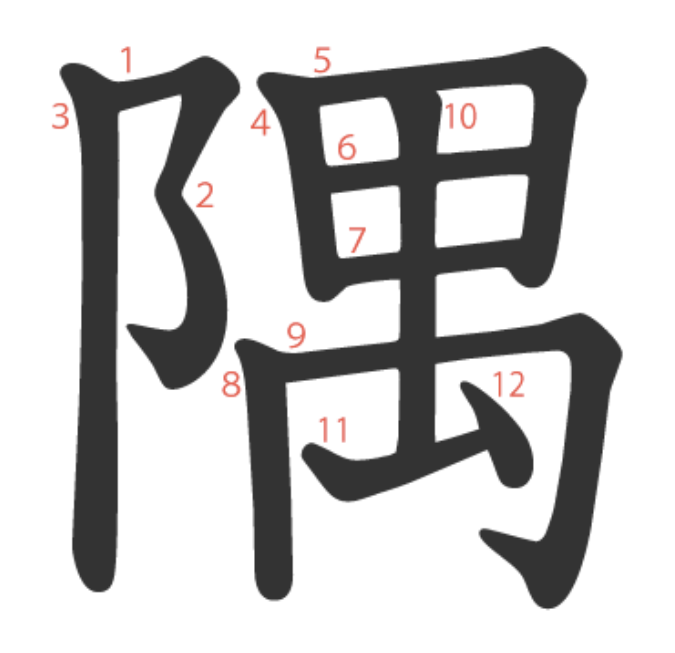 • 의미  "모퉁이 우". 구석, 모퉁이