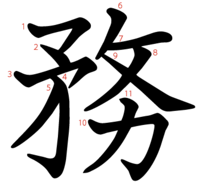 • 의미  "힘쓸 무". 힘쓰다, 종사하다