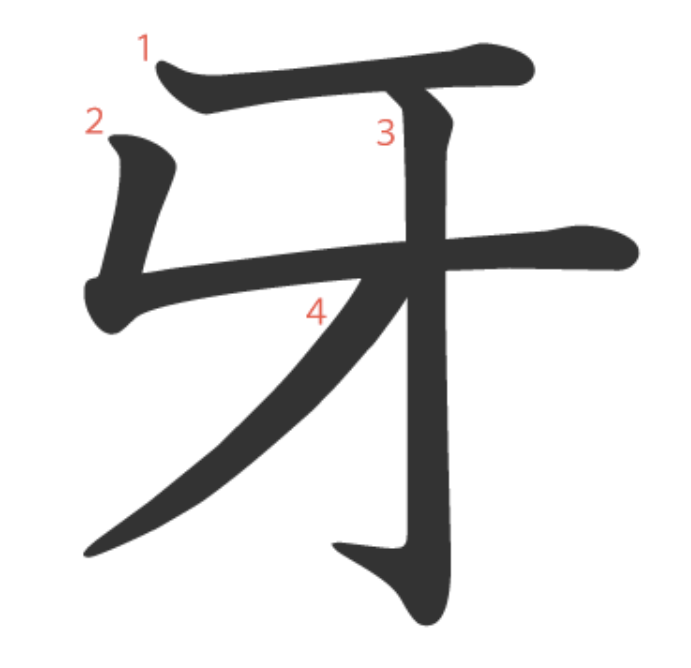 牙는 "동물의 이가 서로 맞물리는 모습"을 그린 상형문자입니다.
