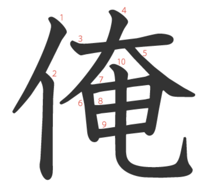 俺는 "번개(电)처럼 크고 강한(大) 남성(亻)" -> "나(남성의 1인칭)"이라는 뜻의 글자입니다.