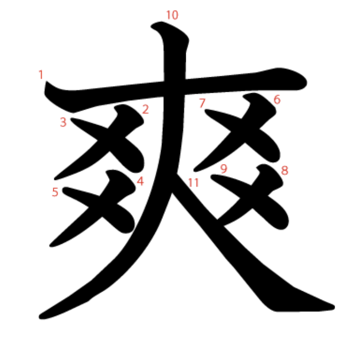 爽는 "시원한 수박 네 덩이(爻爻)를 들고 온 사람(大)" -> "시원하고 상쾌하다"라는 뜻의 글자입니다.