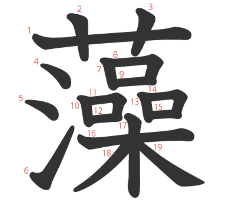 藻는 "물(氵) 속에 난 수초(艹)를 채집해 말리다(燥)" -> "물풀, 수초"라는 뜻의 글자입니다.