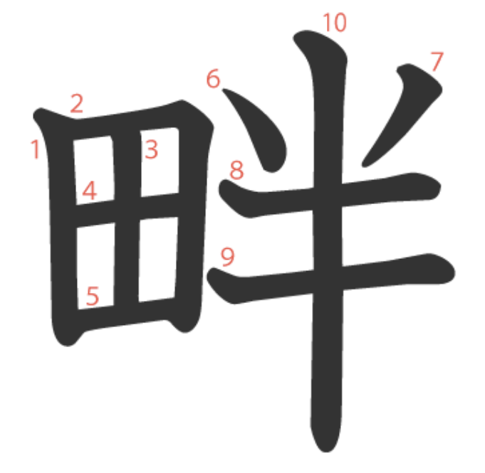 (소리부 겸 의미부) 「半」(ハン)은 "절반"이라는 뜻입니다.