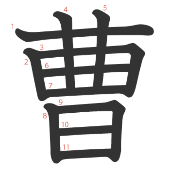 曹 = 一 + 曲 + 曰。