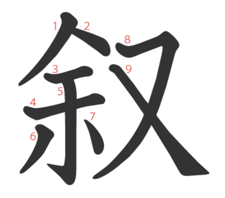叙는 "손(又)으로 나뭇잎(余)을 하나하나 떼다" -> "차례대로" -> "서술하다"라는 뜻의 글자입니다.