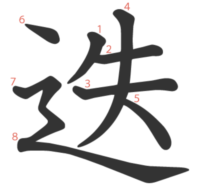 (의미부) 「⻌」는 "길"을 뜻합니다.