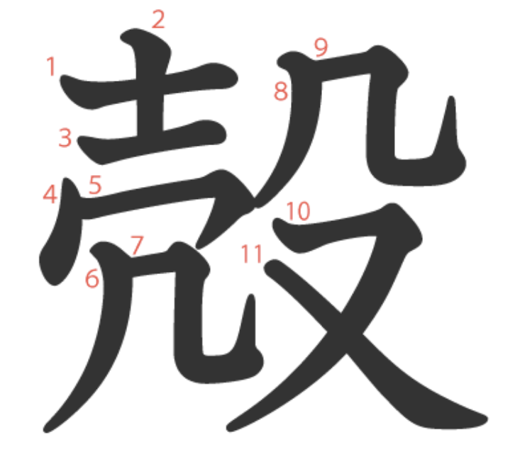 殻는 穀에서 아래쪽의 禾만 几로 바꾼 글자입니다.