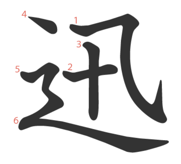 迅는 "빠른 속도로(卂) 길을 질주하다(⻌)" -> "빠르다"라는 뜻의 글자입니다.