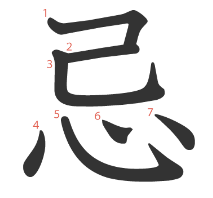 忌는 "남을 싫어하는 마음(心)은 모두 자신(己)에게서 비롯되는 것이다" -> "꺼리다, 싫어하다"라는 뜻의 글자입니다.